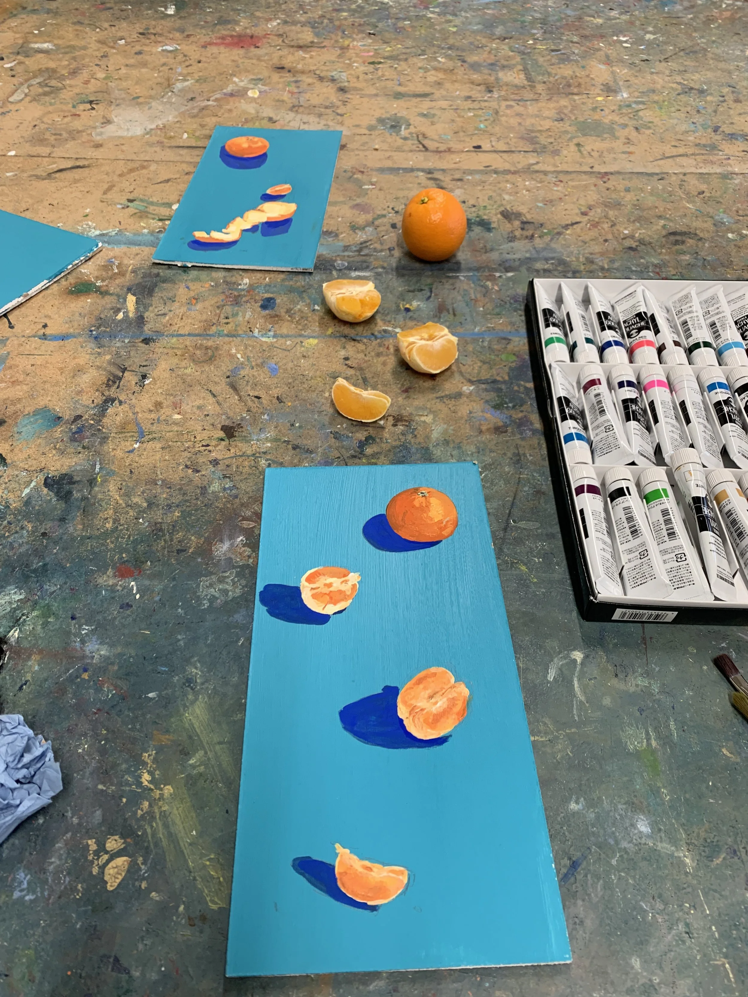 As the day unravelled, so did my orange. Piece by piece. First the whole, then the peel, and then the segments, cascading down my turquoise boards, popping with colour and demanding attention.